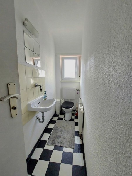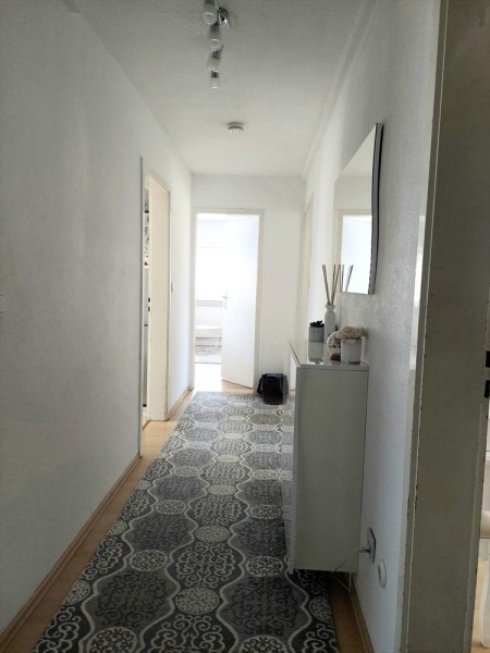 Über das Treppenhaus gelangen Sie in die großzügige Wohnung im Obergeschoss. Diese ca. 95 m² große Wohnung bietet ein einladendes Wohn- und Esszimmer, zwei flexibel nutzbare Kinder- oder Gästezimmer, ein Schlafzimmer mit direktem Zugang zum Balkon, eine Küche, ebenfalls mit Balkonzugang, sowie ein Tageslicht-Badezimmer und ein separates WC.