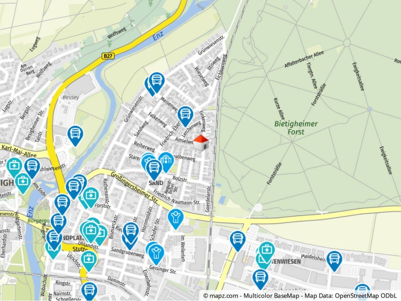 Das bebaute Grundstück befindet sich in einem der begehrtesten Wohngebiete von Bietigheim-Bissingen, einer malerischen Stadt im Südwesten Deutschlands. Eingebettet in eine ruhige und familienfreundliche Nachbarschaft, bietet die Lage im Wohngebiet "Sand" eine hervorragende Mischung aus städtischem Komfort und naturnahem Leben. In unmittelbarer Umgebung finden Sie zahlreiche Einkaufsmöglichkeiten, Restaurants und Cafés, die den täglichen Bedarf mühelos abdecken.