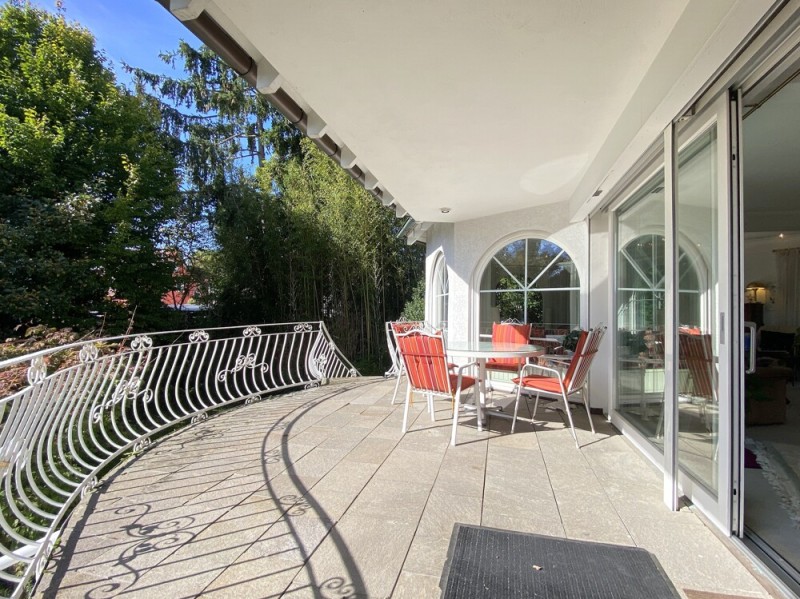 Auf der traumhaften Balkonterrasse mit Zugang zum Garten können Sie mit ihren Liebsten garantiert genüssliche Zeiten erleben ...