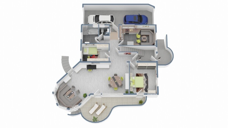 Eine geräumige Doppelgarage mit Einfahrten von zwei Seiten und direktem Zugang zum Haus macht das Leben noch komfortabler.