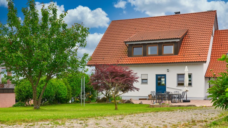 - Terrasse mit weitläufigem Gartengrundstück