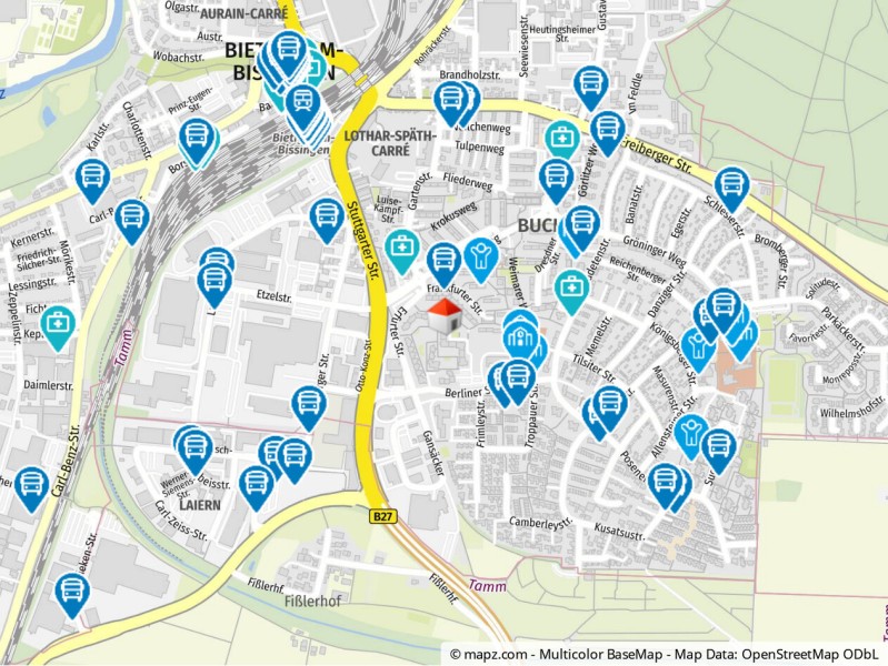 Bis zur nächsten Bushaltestelle sind es ca. 5 Gehminuten. Der Bahnhof in Bietigheim liegt ca. 5 Fahrminuten entfernt. Dem VVS-Verbund angeschlossen, erreicht man z. B. mit der Bahn, S-Bahn in Kürze Heilbronn, Ludwigsburg, Stuttgart und von dort aus die Fernzüge ...