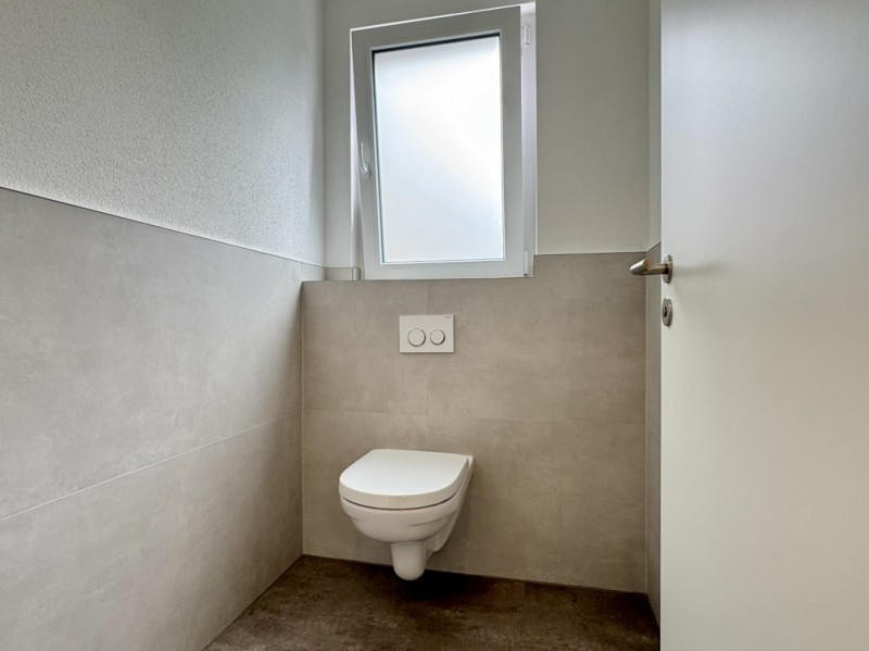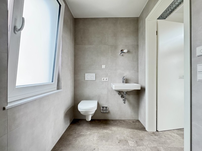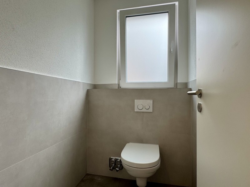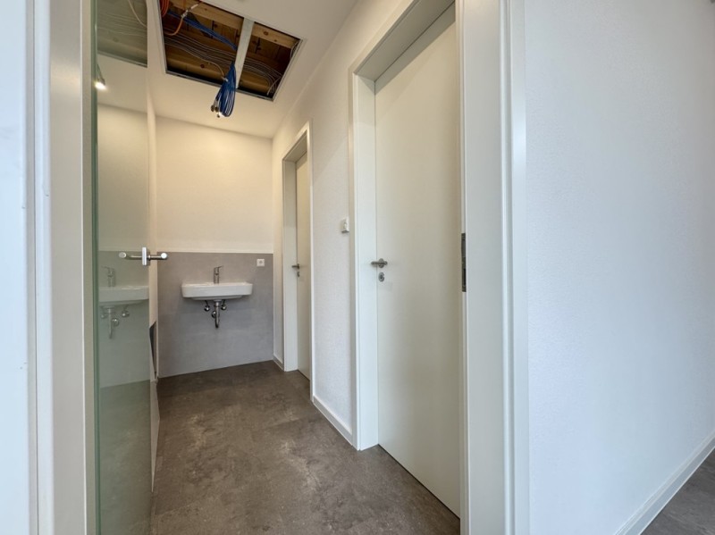 - Zwei Kunden-WCs sowie ein Bad mit Waschbecken, WC und Anschluss für Waschmaschine – Dusche nachrüstbar
