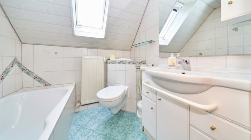 Im Dachgeschoss erwarten Sie drei gemütliche Schlafzimmer, zwei davon mit Zugang zum Kniestock – ideal als begehbarer Kleiderschrank oder Stauraum. Ein weiteres Tageslichtbad mit Duschwanne ergänzt das Raumangebot.