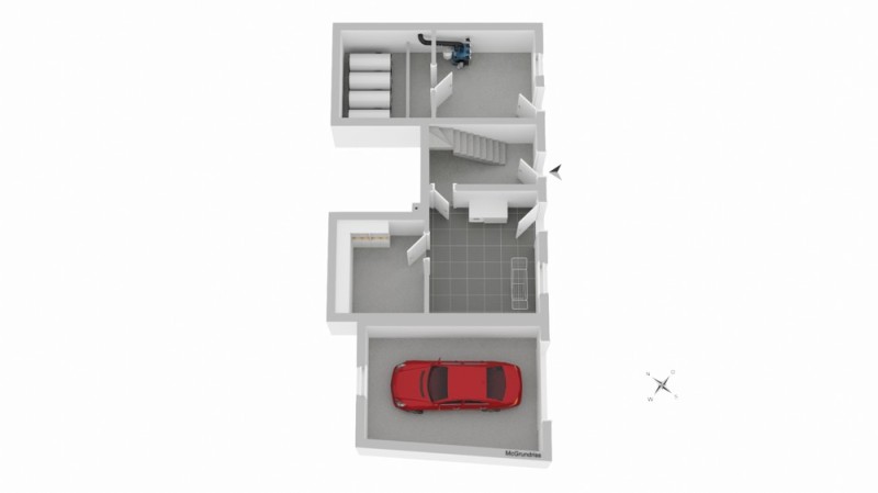 Im Erdgeschoss empfängt Sie das helle Treppenhaus, ergänzt durch funktionale Nebenräume wie Waschküche und Abstellfläche. Der separate Heizraum ist von außen zugänglich.