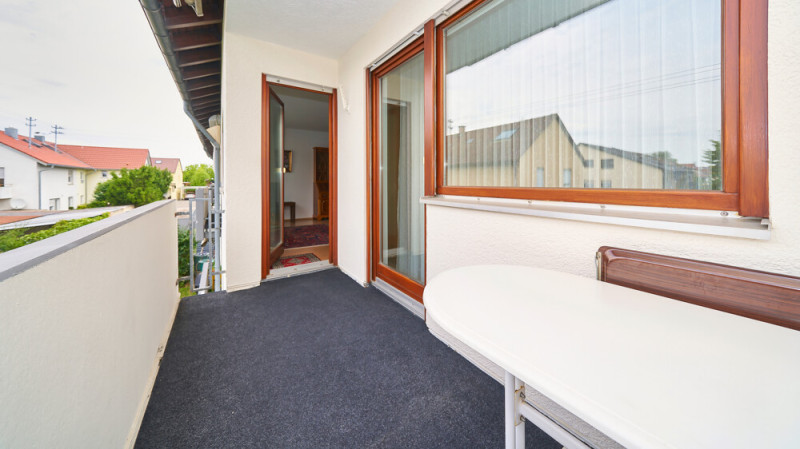 Rechts beeindruckt das weitläufige Wohnzimmer mit vielen Gestaltungsmöglichkeiten und Zugang zum Balkon. Angrenzend befindet sich das Schlafzimmer, ebenfalls mit direktem Austritt ins Freie.