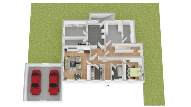 Zum Haus gehören eine Doppelgarage, Außenstellplätze sowie ein großer Garten mit beheizbarem Gewächshaus – perfekt für Hobbygärtner.